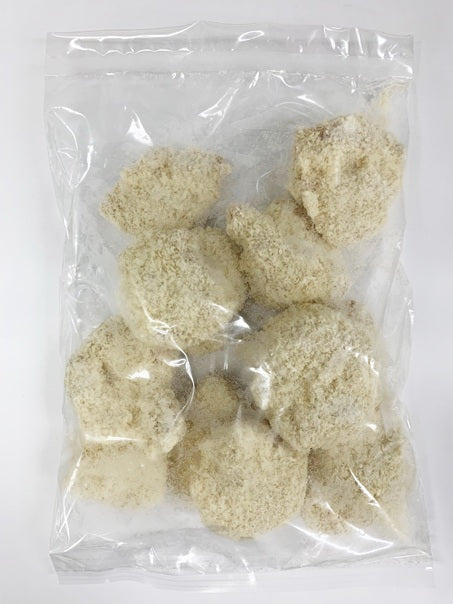 - 工場では衣付け後に加熱調理せず冷凍しております。流通中に衣が一部剥がれることがあります。