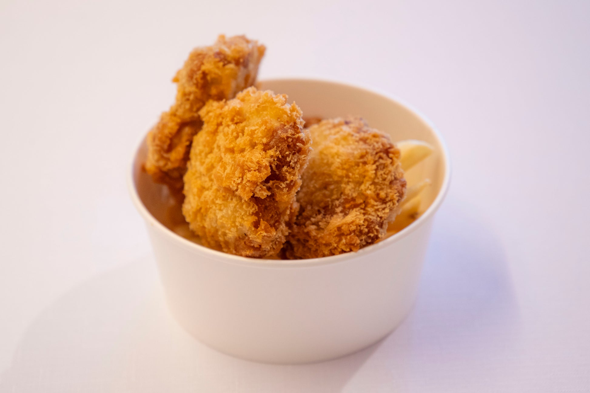 - 冷凍のまま、180℃以上の油でまわりがカリッとするまで揚げてください。目安は約4分です。揚げ油はどの油でも構いませんが、菜種油がおすすめです。